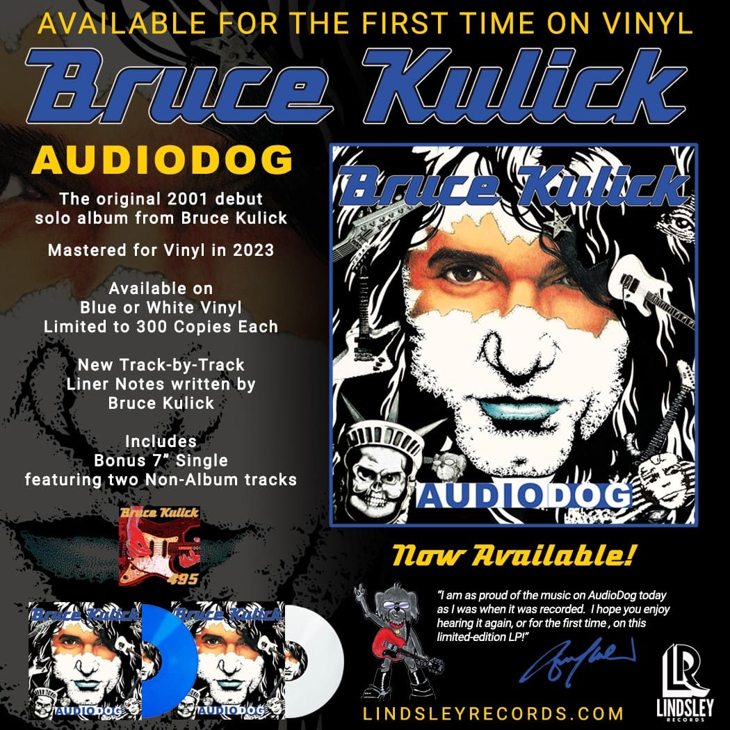 Bruce’s debut 2001 solo release, AUDIODOG is on VINYL for the first time! Own the original 2001 debut solo album from Bruce Kulick mastered for vinyl in 2023! Come with bonus red 7″.